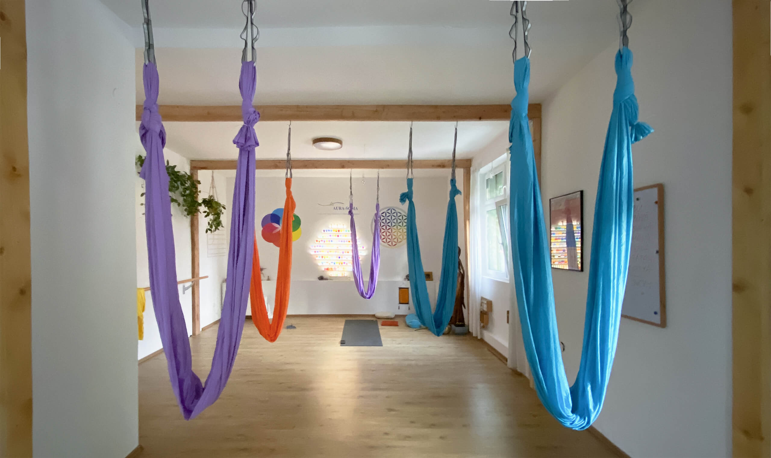 A lebegő jógához használt textilt hammocknak hívjuk, ez egy teherbíró anyag, ami ha ki is szakad, nem szakad tovább.